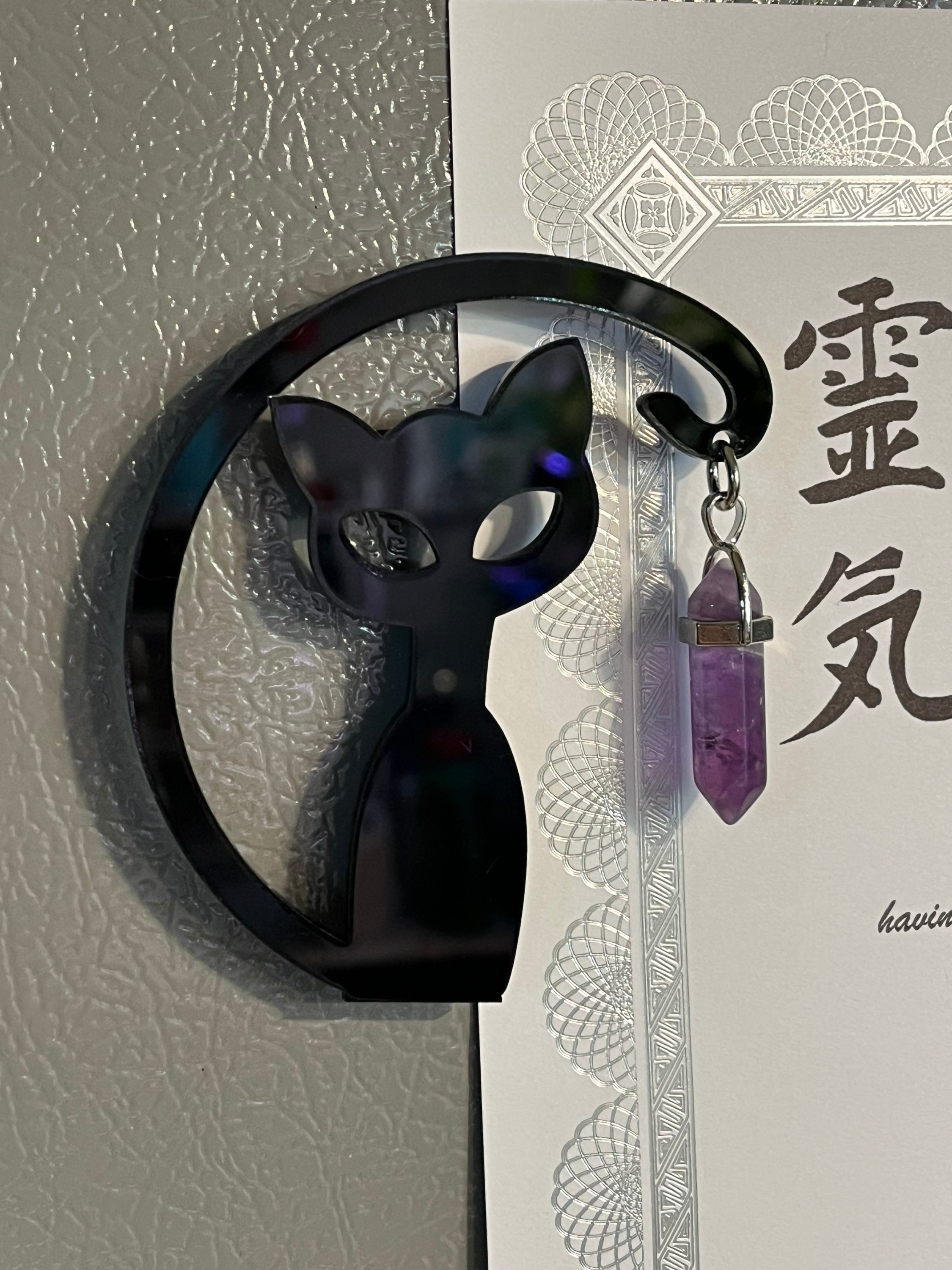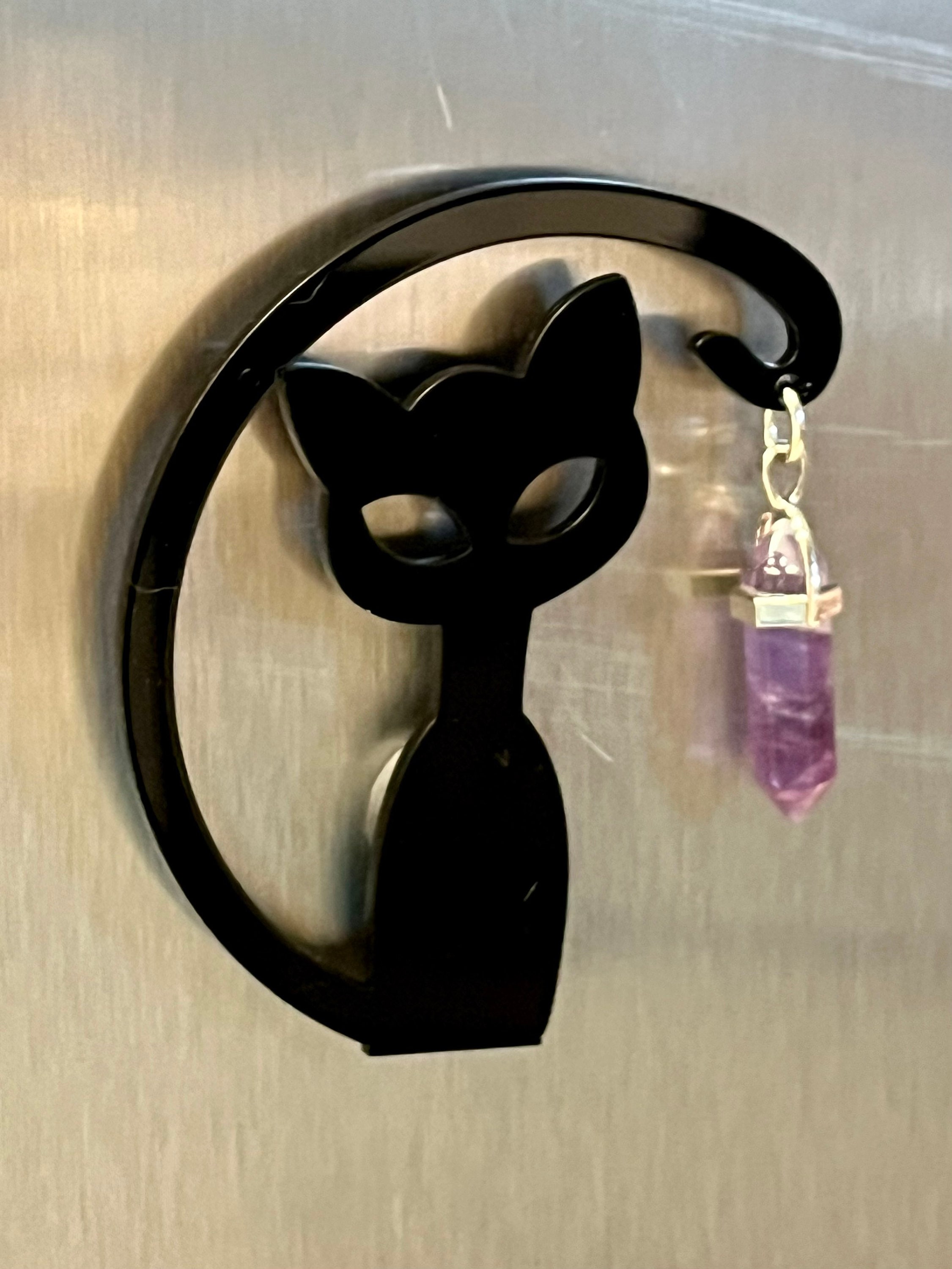 Atomic Kitty Cat Refrigerator Magnet - Quartz, Rose Quartz, Obsidian, Tigers Eye, Green Aventurine, Amethyst