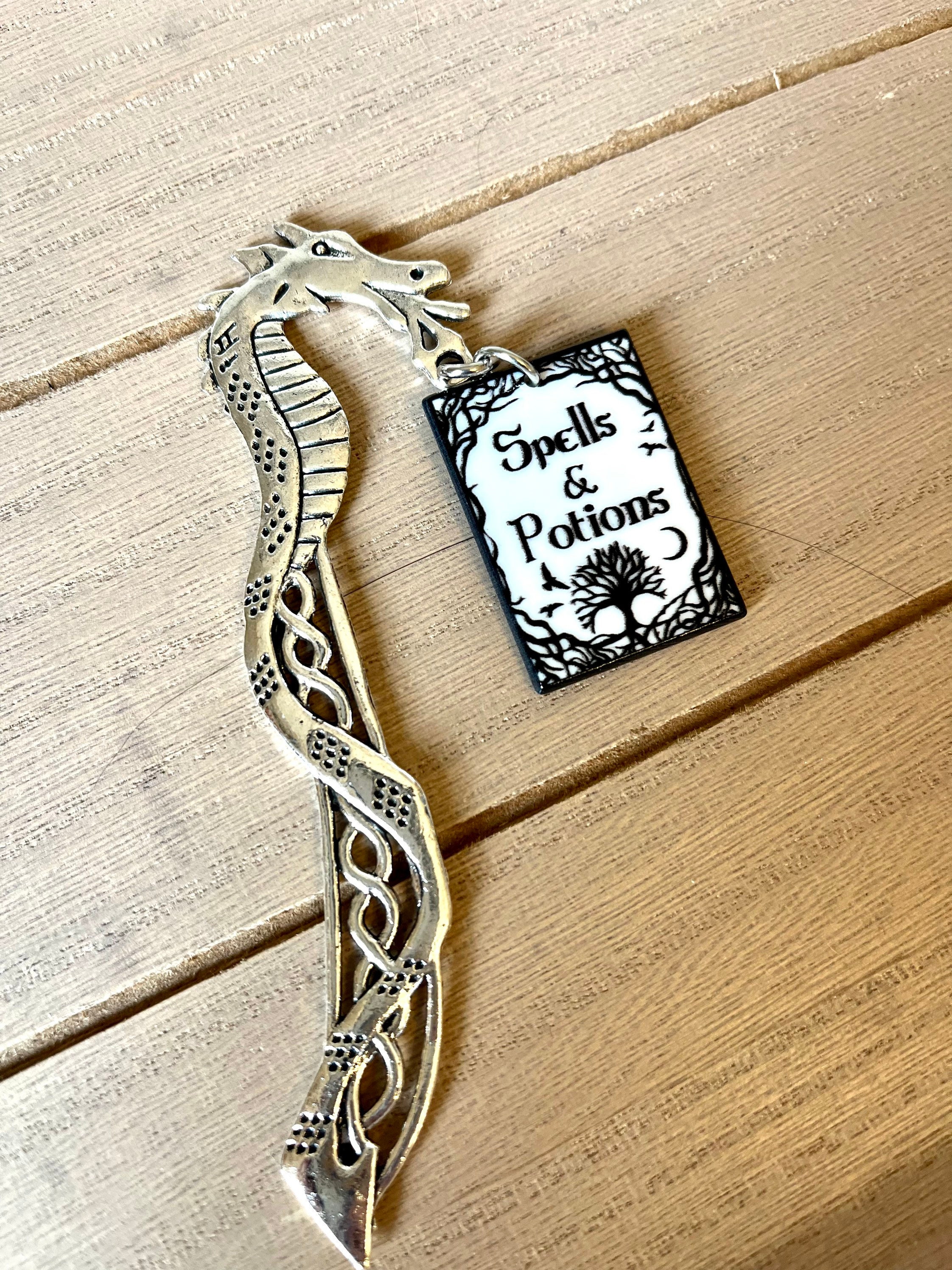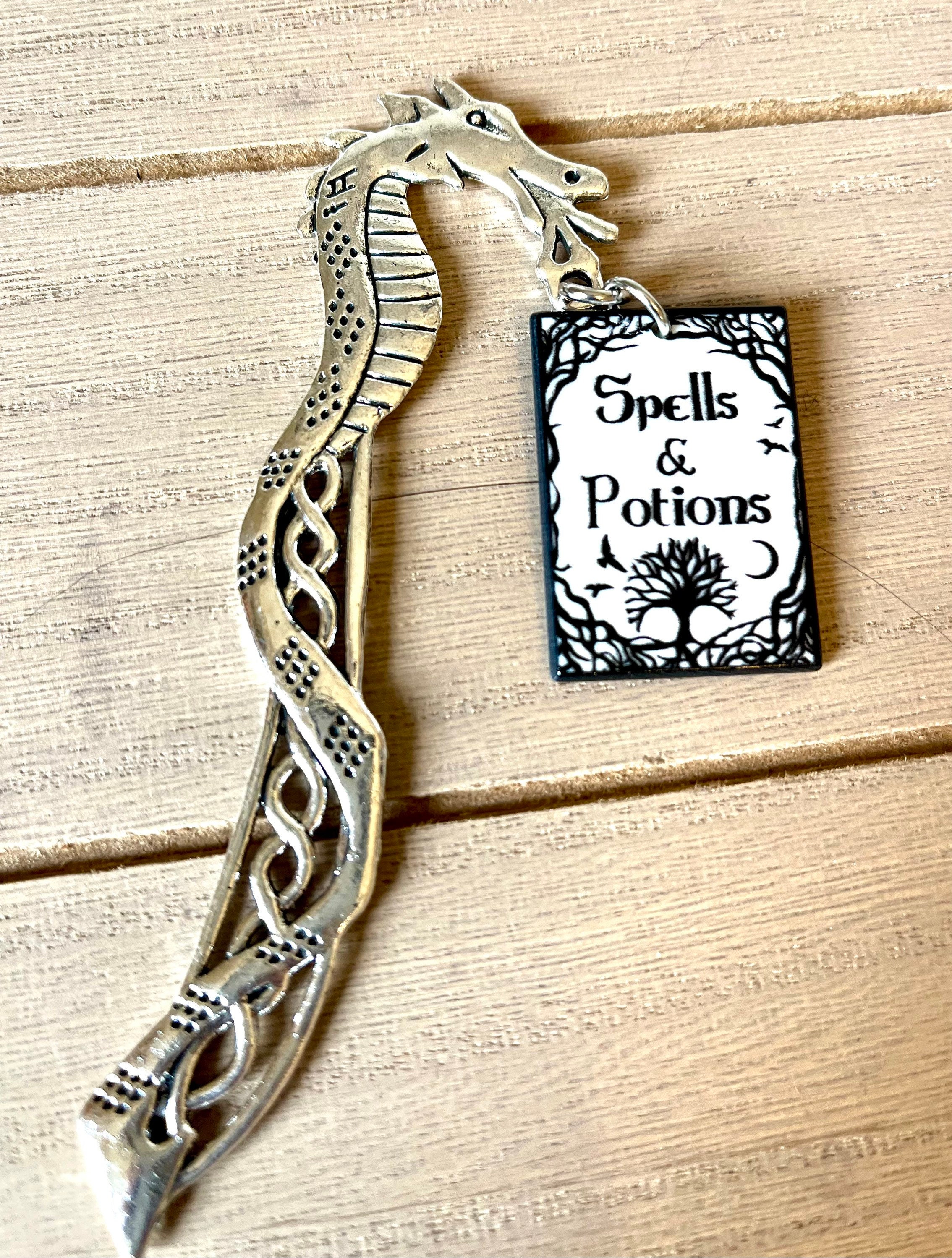 Metal dragon portion measures a little over 4.5 inches. Spell Book measures 2 by 1 inches. Please contact me with any questions!